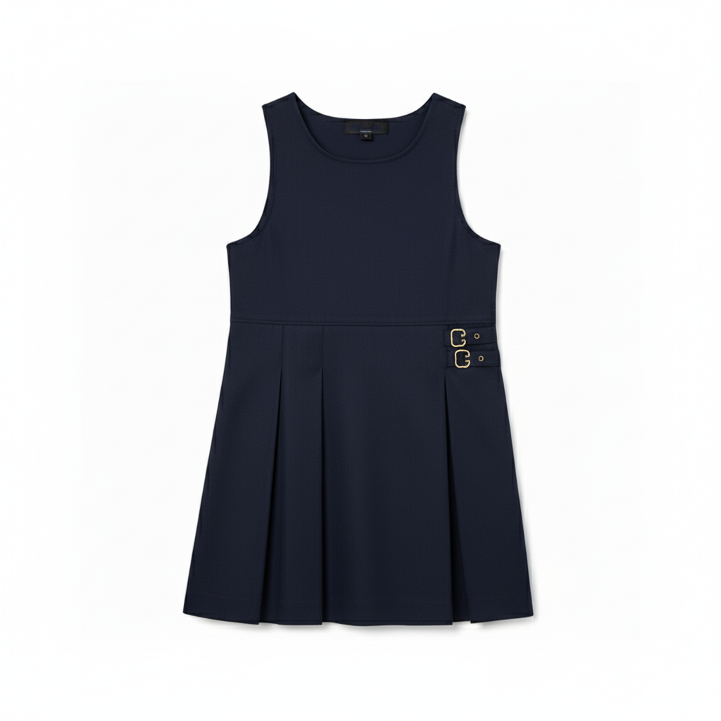 A classic MarcelHughes double breasted pinafore that offers a formal and comfortable uniform option for students.